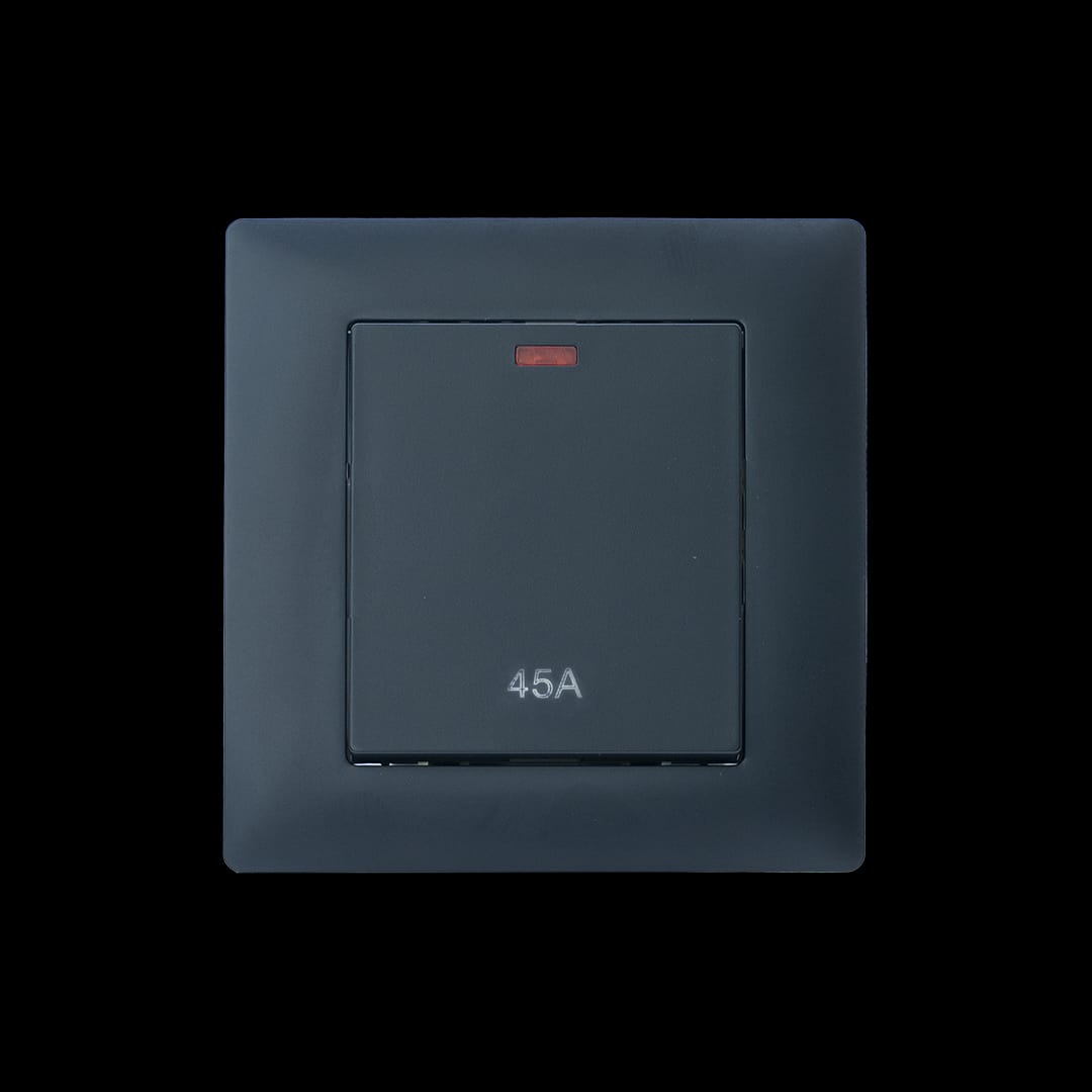 The Toronto 45A 1-Gang Double Pole (DP) Switch (3×3) offers smooth operation and heavy-duty performance. Designed for maximum safety and efficient control of high-power electrical appliances in modern kitchens and commercial spaces.